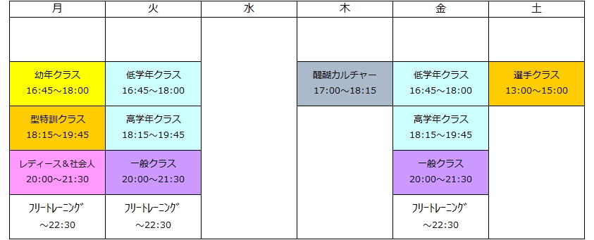 ※ 祝日の稽古はお休みです。